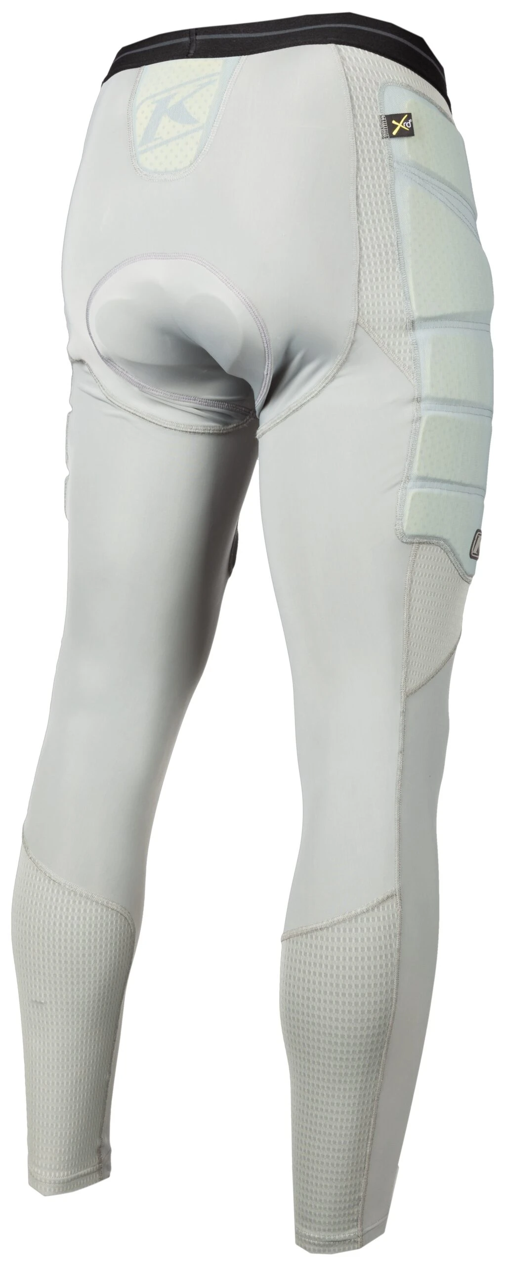 - Perforated Poron XRD extreme impact protection material on sides, thighs, and over tailbone